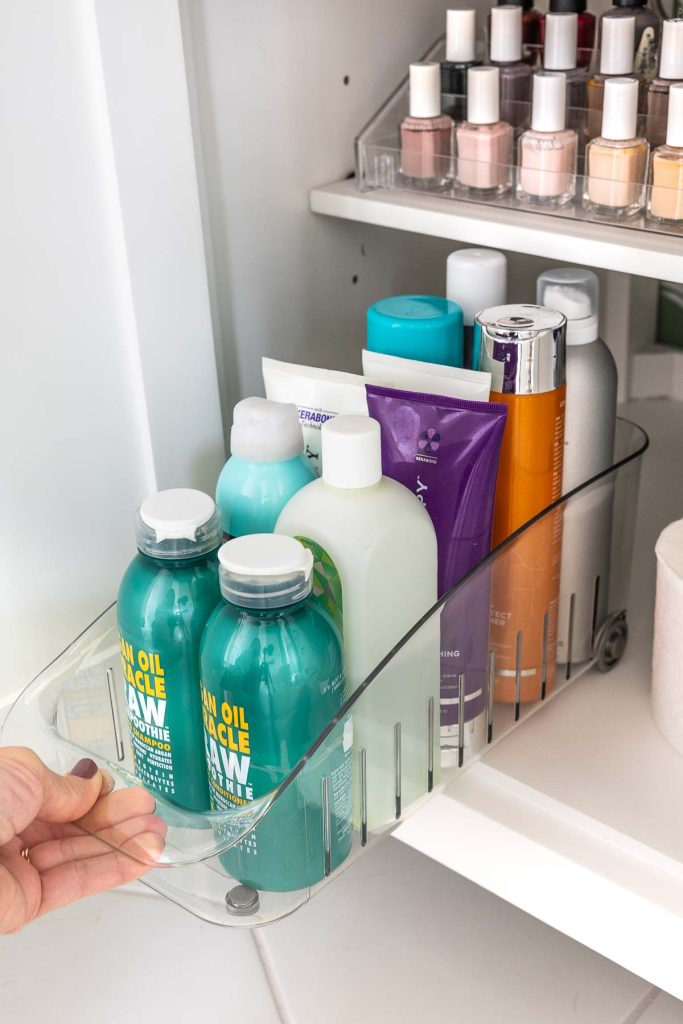 Store all your shower-prep products in one of these clear caddies. Simply roll it out when you need it and roll it back into the cabinet when finished.