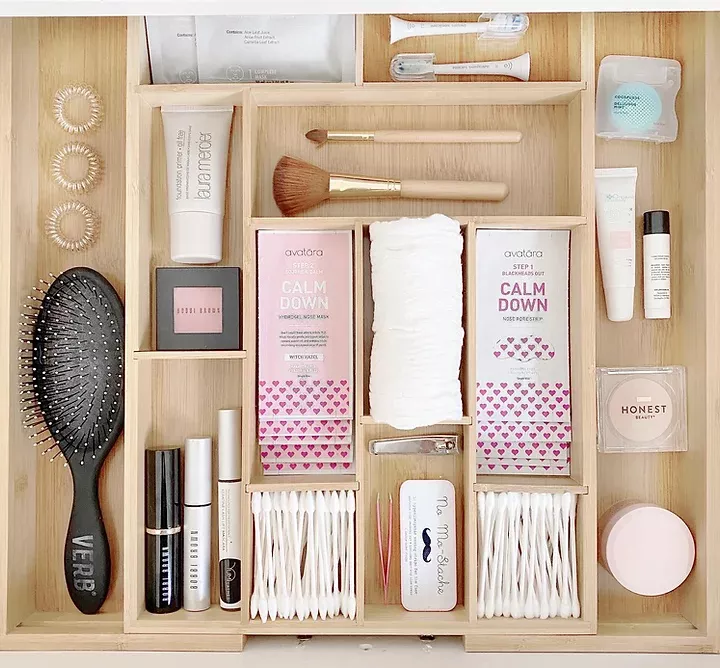These dividers create dedicated slots for toothbrushes, makeup brushes, and small jars. They keep items from rolling around and getting lost.