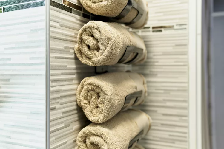 Consider your towel rotation—you need separate space for drying used towels and storing clean ones.