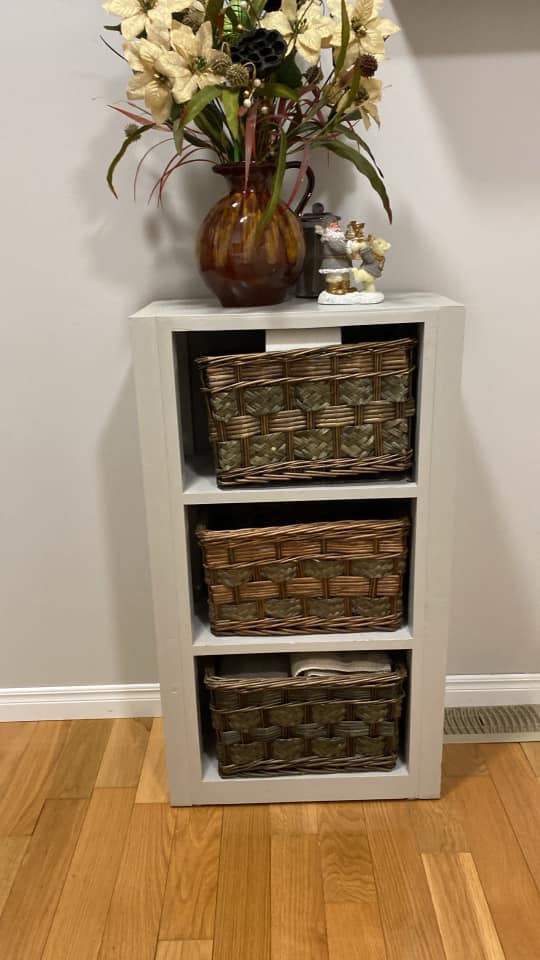 11. Tiered Wicker Baskets Inside a Cube Shelf