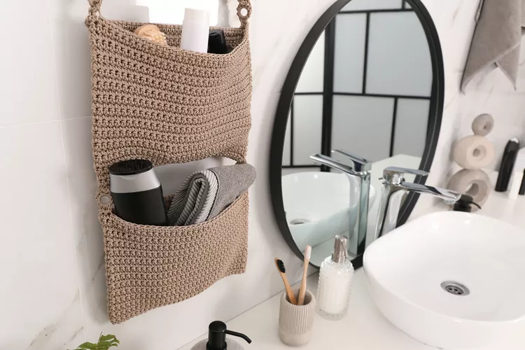 You can add a cozy, handcrafted feel to your bathroom with woven pockets. They hang flat against the wall yet hold small towels with ease.