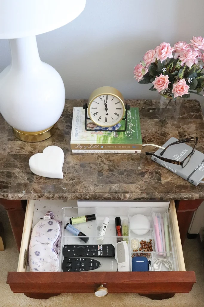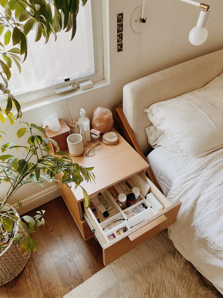 Pull out everything, wipe the drawer clean, and implement the system that speaks to you. A tidy nightstand is waiting to give you the gift of a calmer morning and a more restful night.