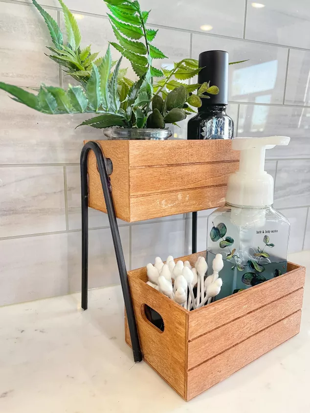 2. Tiered Wooden Crate Organizer