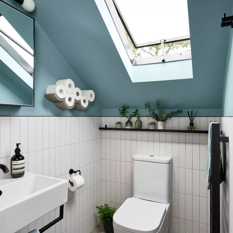 Turn something ordinary into fun decor. A cloud-shaped toilet roll holder stores extra rolls in a creative way and adds a hint of humor.