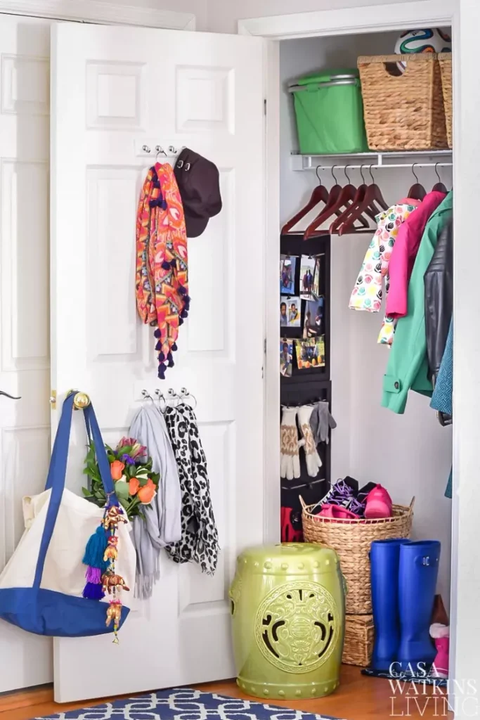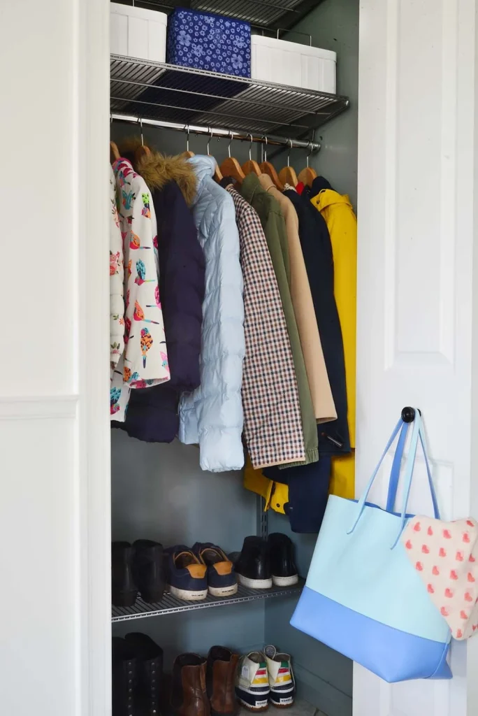 Now, let’s look at twelve clever ways to transform your small hall closet from messy to amazing.